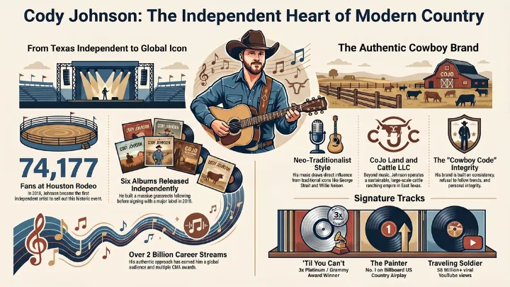 Cody Johnson is one of the most authentic voices in modern country music. Known for his powerful vocals and traditional sound, he has built a loyal fan base without relying heavily on mainstream industry shortcuts.