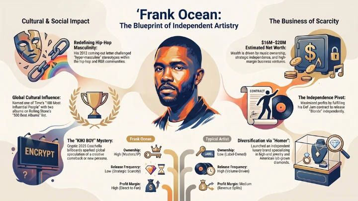 Few artists have reshaped modern R&B and alternative music quite like Frank Ocean. Known for his introspective lyrics, genre-blending sound, and elusive personality, Ocean has built a career that stands apart from the mainstream.