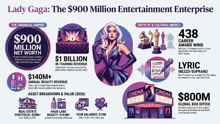 Lady Gaga’s success has translated into significant financial achievements. Her estimated net worth is in the hundreds of millions, driven by: