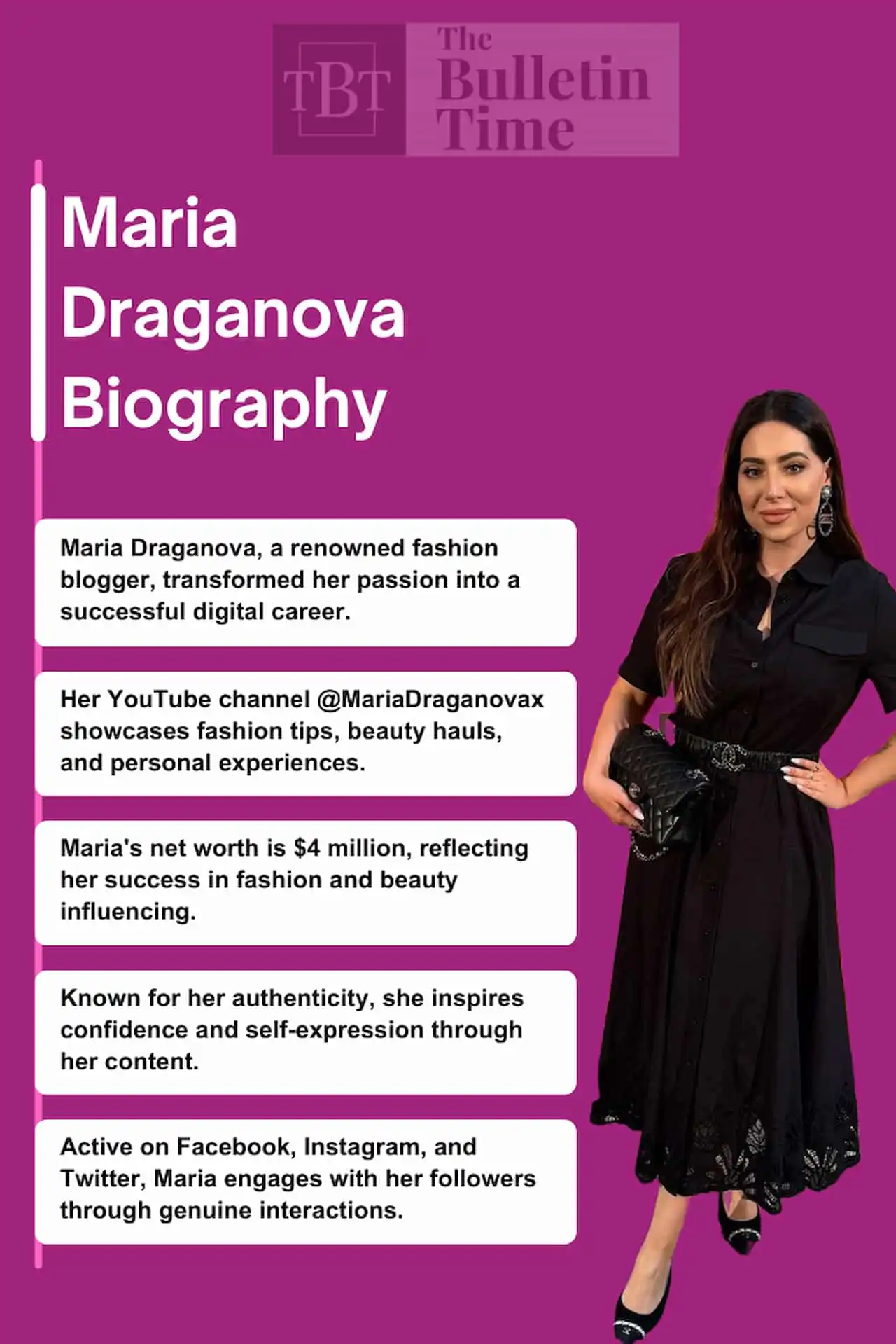 She always tries to inspire her fans with the newest fashions, classic beauty tips, and her personal experiences living a luxurious life. Her honest and likable personality has won her fans worldwide, and her YouTube channel, @MariaDraganovax, is now a must-see for anyone interested in fashion and beauty.