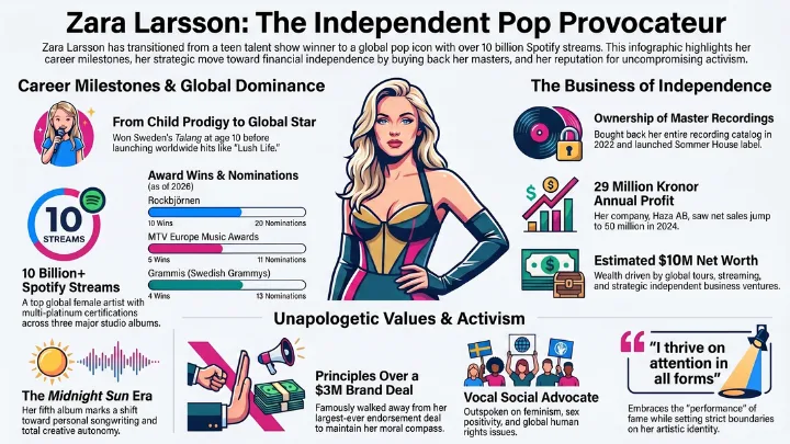Few pop artists manage to balance commercial success with a distinct artistic voice—but Zara Larsson has done exactly that. From winning a talent show as a child to topping global charts, her journey reflects determination, talent, and a sharp understanding of modern pop music.