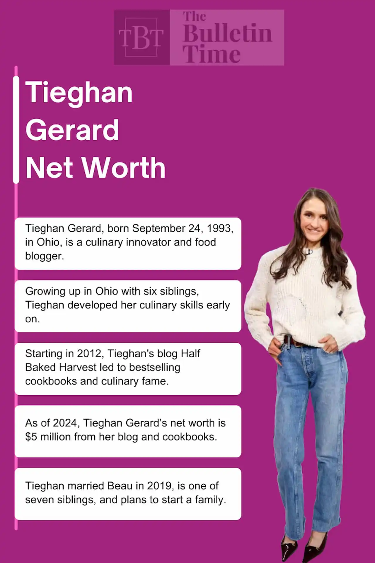 Tieghan Gerard’s net worth, estimated at $5 million as of 2024, reflects her success as a chef, food blogger, and cookbook author. Her highly trafficked blog, Half Baked Harvest, is the foundation of her income, attracting millions of visitors and generating revenue through advertising, sponsorships, and affiliate marketing. Additionally, her bestselling cookbooks, which have sold hundreds of thousands of copies, have contributed significantly to her net worth.