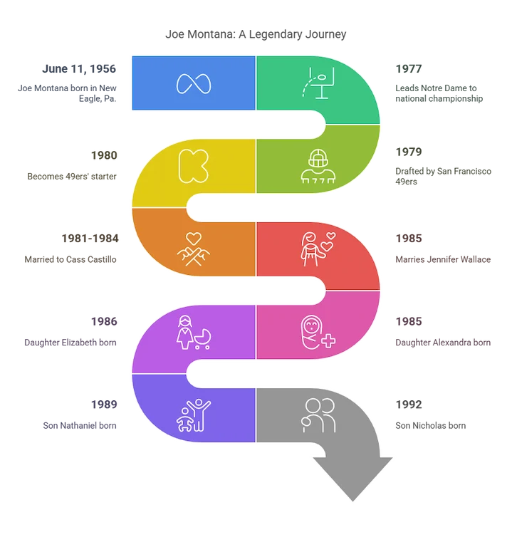 The couple met when they worked together on a commercial 40 years ago. With Jennifer, Montana has four children: daughters Alexandra (born 1985) and Elizabeth (born 1986), and sons Nathaniel (born 1989) and Nicholas (born 1992).