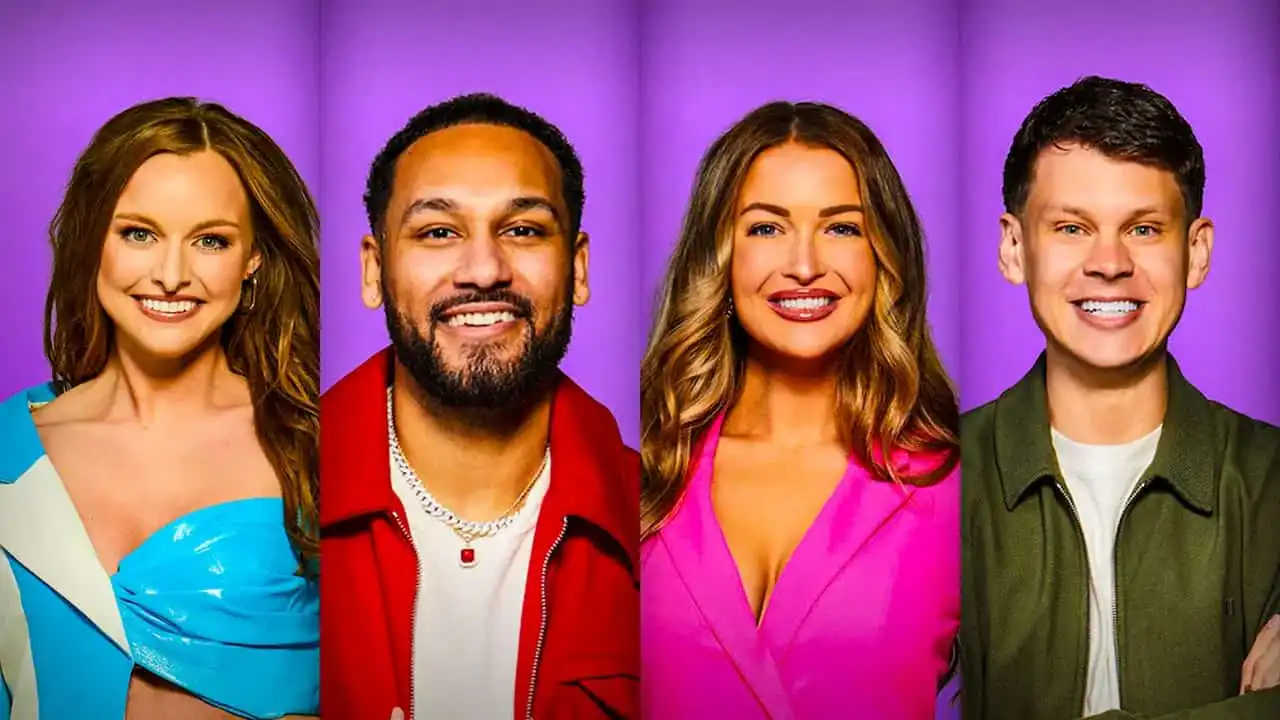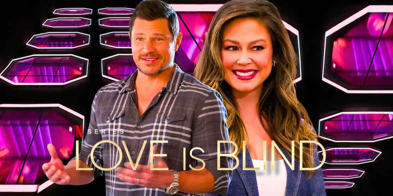 Hosts Nick and Vanessa Lachey return to guide the contestants through this unique social experiment to prove whether true love can blossom without physical attraction. The show’s signature gold wine glasses appear again as a visual reminder of the unconventional nature of this dating experience.