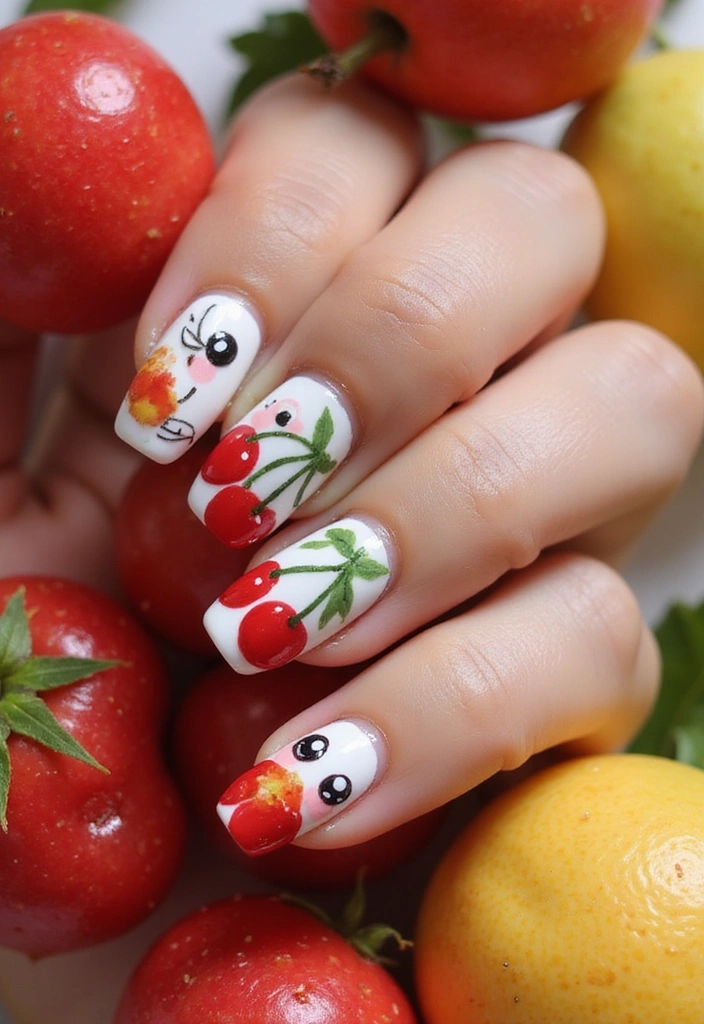 7. Cherry Fruit Nail Art