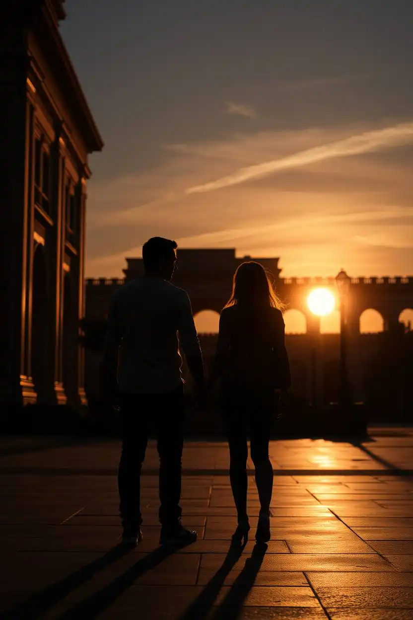 This pose feels peaceful and magical. It works best outside during golden hour, just before sunset. Silhouette at sunset makes photos look dreamy and romantic. It’s a great way to capture a special moment with someone you care about.