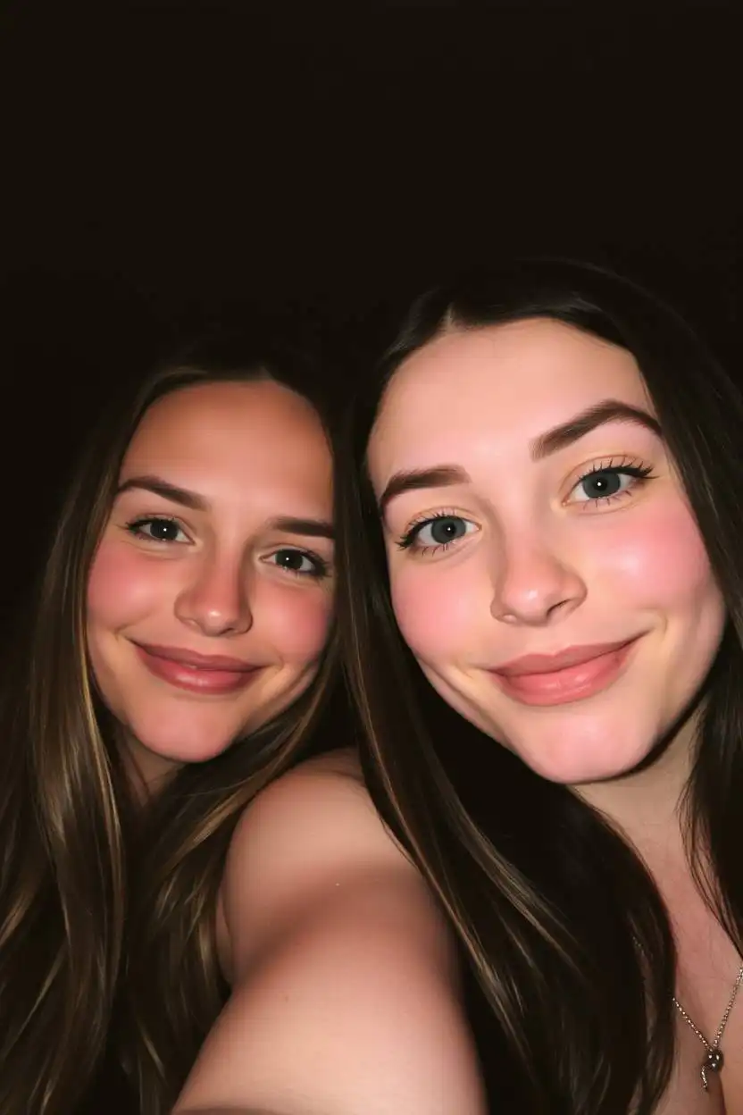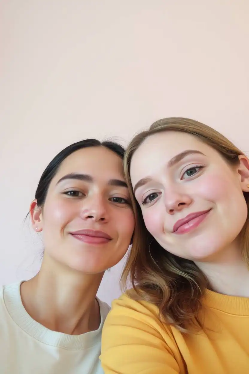 This pose is excellent for showing your personalities and having fun together. It’s easy to do anywhere—at home, outside, or at a party. Taking a selfie side by side makes photos look casual and happy. It’s perfect for capturing spontaneous moments and memories.