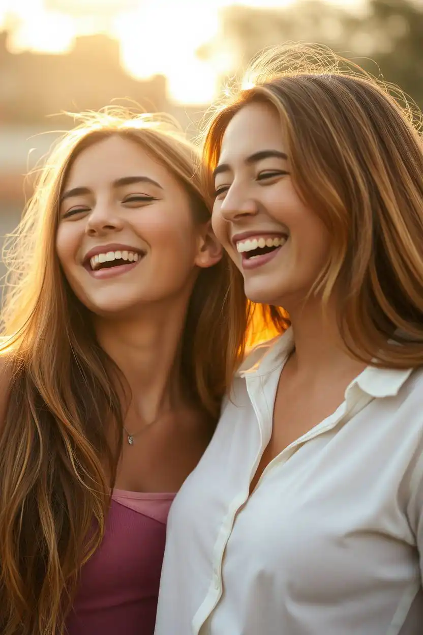 It feels like you are sharing something just for each other. You can do this pose anywhere—at school, in a park, or at home. Whispering a secret makes photos feel private and fun, capturing a moment that only the two of you share.