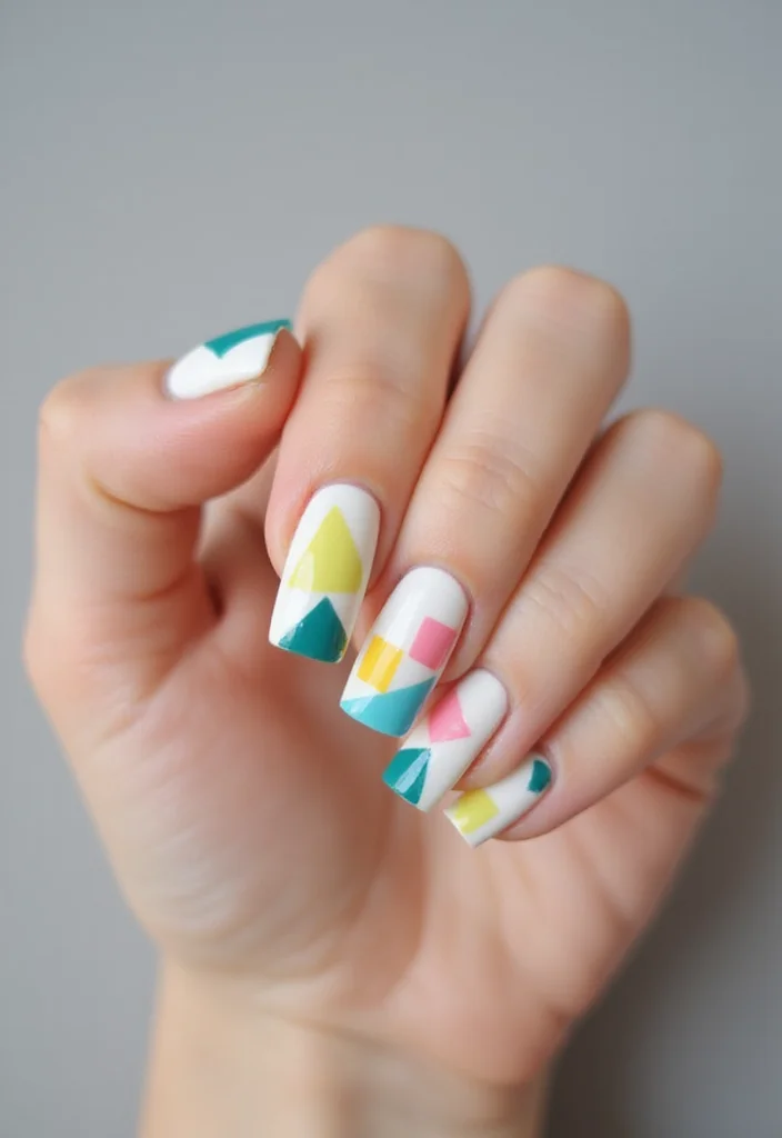 - Get funky with geometric shapes on short nails!