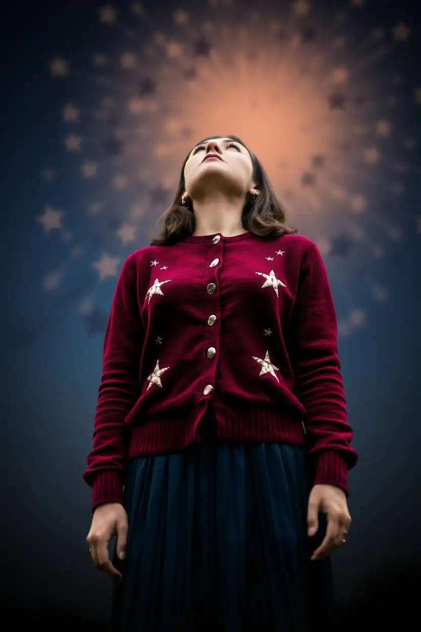 This outfit is great for school, family dinners, or just reading a book by the window. The stars make you feel dreamy, and the skirt adds a touch of fun. You can pair this look with sneakers, boots, or flats. It’s comfortable and makes you feel special.