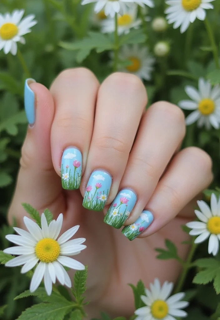 Spring landscape nails are ideal for those who adore celebrating the beauty of nature and want their nails to reflect that appreciation. They’re a fantastic way to embrace the season!