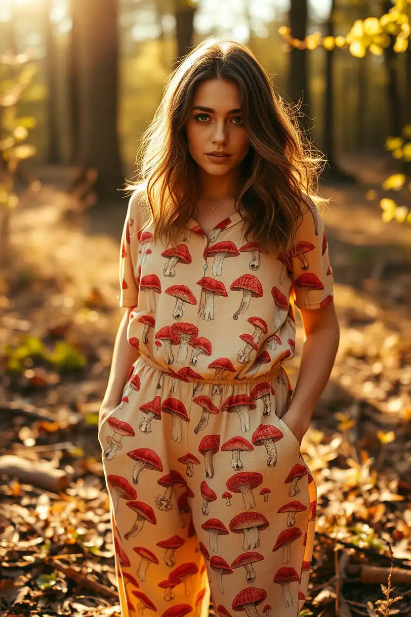 A baggy mushroom-print jumpsuit is a fun and playful choice. The jumpsuit is loose-fitting, allowing you to move easily and feel comfortable throughout the day. The mushroom prints are cute and colorful, making the outfit stand out. It’s perfect for hanging out with friends or going on adventures.