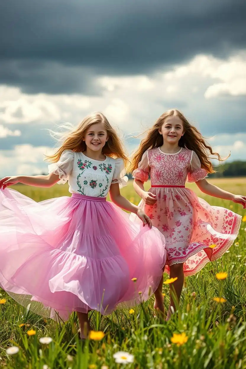 A fluttery tulle skirt feels light and bouncy, almost like wearing a cloud. The soft layers move with you, making every step magical. Pair it with an embroidered blouse for extra charm. The blouse might have tiny flowers, stars, or cute animals stitched on it.
